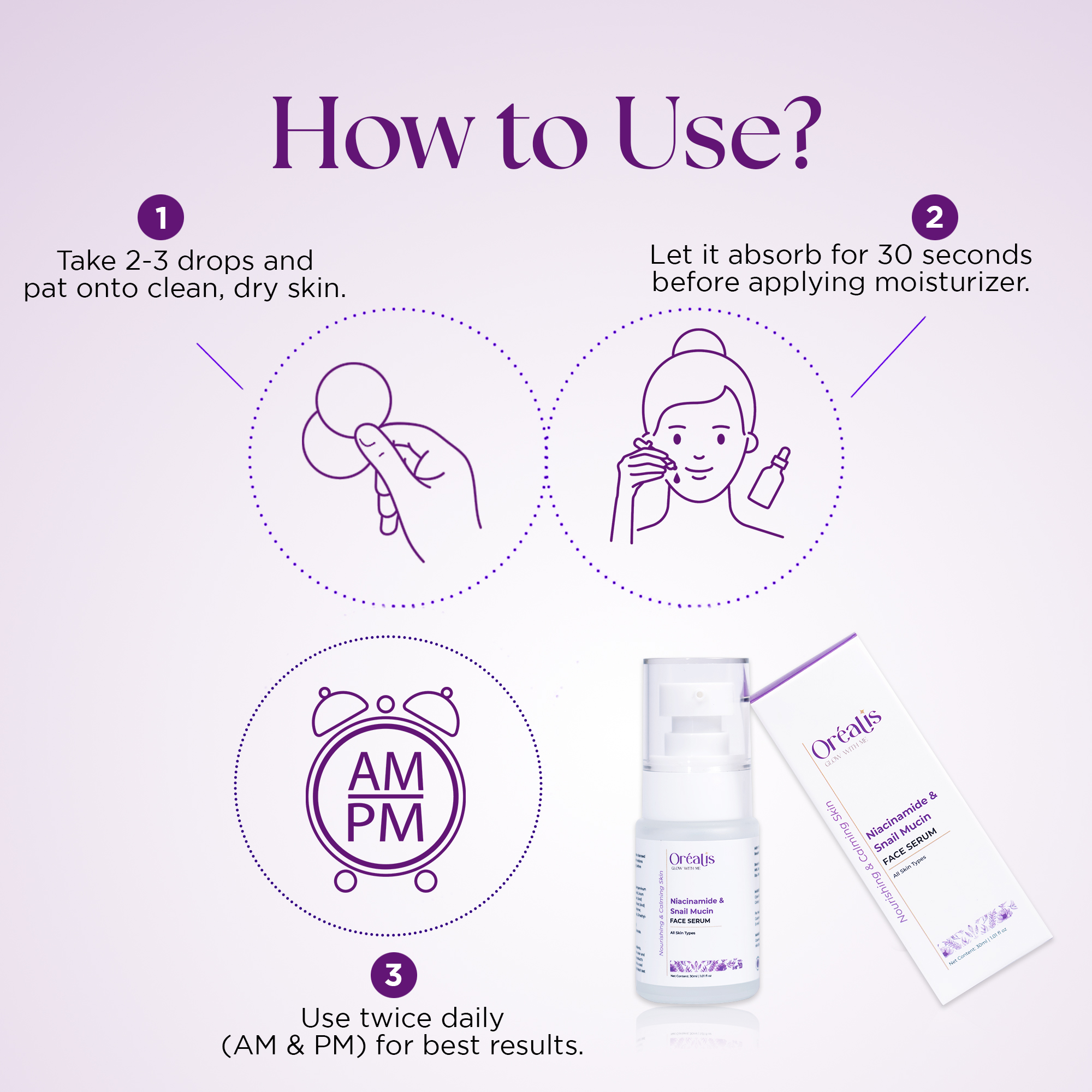 – Take 2-3 drops and pat onto clean, dry skin.